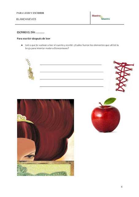 Hoy realizaremos las hojas 3-4-5 y 6 del cuadernillo del Blancanieves, no te asustes que son súper fáciles... acá las subimos... ojo que todo no se copia en el cuaderno, lee las consignas y en algunas tenés lugar para resolverla en la fotocopia.
